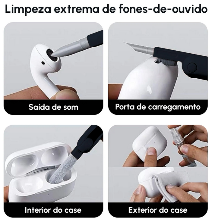 · Kit 7 em 1 multifuncional para limpeza completa de eletrônicos.