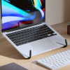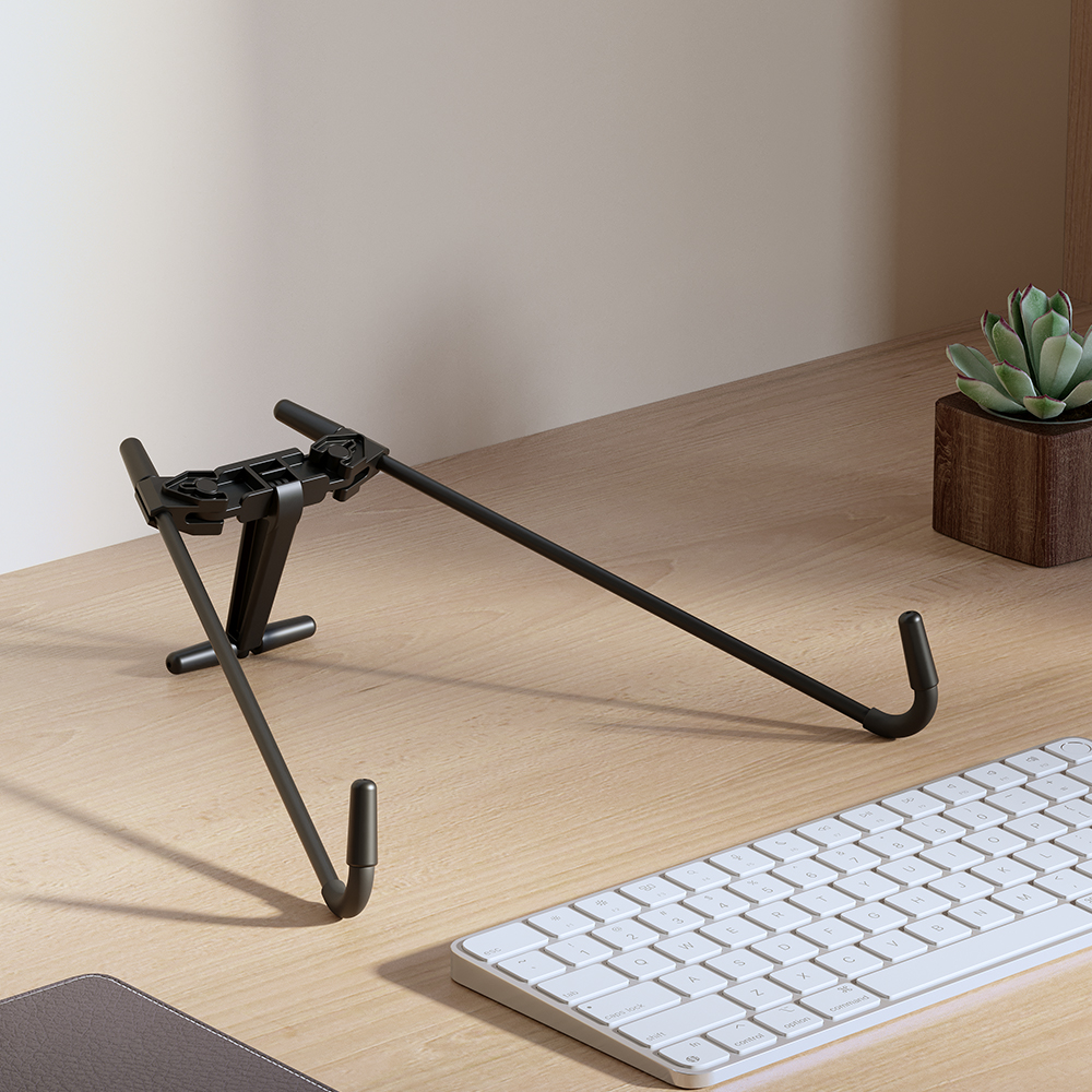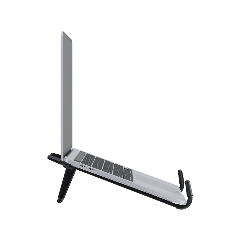 Com um design moderno e compacto, o suporte otimiza o espaço de uso e se adapta facilmente a diferentes superfícies. Além disso, sua estrutura aberta favorece a circulação de ar, ajudando a manter o notebook na temperatura ideal e evitando o superaquecimento, o que contribui para um melhor desempenho e maior vida útil do equipamento.